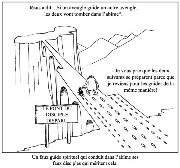 Vous pouvez être sûrs que lorsque vous allez consentir à trahir le Guide Spirituel que vous avez eu au début, vous allez le quitter tôt ou tard pour toujours et finalement vous allez rester avec un faux Guide spirituel, sur la fausse voie spirituelle que vous allez embrasser. Et si certains de vous vont se poser la question pourquoi existe-il des faux Guides spirituels, notre réponse, dont le message va être compris seulement par ceux qui sont éveillés, intuitifs et pleins de bon sens, sera : DES FAUX GUIDES SPIRITUELS ONT EXISTÉ ET VONT TOUJOURS EXISTER, JUSTEMENT PARCE QU’ EXISTÉ ET QUE VONT ENCORE EXISTER DES FAUX DISCIPLES. LE DESTIN TRAGIQUE DES FAUX GUIDES SPIRITUELS EST, TOUJOURS SANS EXCEPTION, QU’ILS AURONT TOUJOURS SEULEMENT DES FAUX DISCIPLES. DE TELS PAUVRES ÊTRES PERDUS (LES FAUX GUIDES SPIRITUELS) AURONT LE RÉVÉLATION, TÔT OU TARD, D’UNE TERRIBLE VÉRITÉ, LORSQU’ILS VONT SE RENDRE COMPTE DE L’HYPOSTASE FUNESTE DANS LAQUELLE ILS SE SONT ÉNGAGÉS. MAIS ALORS IL SERA TROP TARD POUR QU’ILS PUISSENT FAIRE QUELQUE CHOSE POUR RÉPARER TOUT LE MAL QU’ILS ONT COMMIS CHEZ CEUX QU’ILS ONT ARRACHÉ – PAR DES MANOEUVRES DÉMONIAQUES HABILES – DE LA VOIE SPIRITUELLE AUTHENTIQUE SUR LAQUELLE ILS SE SONT TROUVÉS, ET EN LES DÉTOURNANT OU EN LES RACOLANT SUR UNE PSEUDO-VOIE SPIRITUELLE QUI NE PEUT PAS LES CONDUIRE VERS LA LIBÉRATION SPIRITUELLE, MAIS QUI VA FAIRE EN SORTE QU’ILS S’IMMERGENT DE PLUS EN PLUS, SANS S’EN RENDRE COMPTE, DANS LE MARÉCAGE DES ILLUSIONS VAINES, DANS L’ABÎME DE L’AMPLIFICATION DE L’EGO SPIRITUEL. FINALEMENT ILS VONT ÊTRE CONDUIS VERS LES PROFONDEURS SINISTRES DE L’EXACERBATION DE L’ORGUEIL SPIRITUEL.