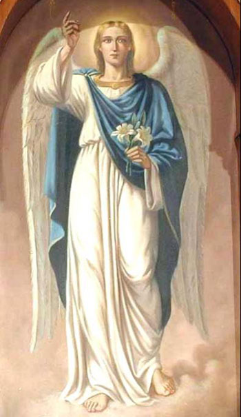 C’est l’Archange annonciateur. Il annonce à Zacharie la conception de Saint Jean Baptiste puis à Marie qu’elle va concevoir un enfant né de l’Esprit Saint. Il est l’ange de la naissance, de la résurrection, de la pitié, de la vérité et de la communication aisée.