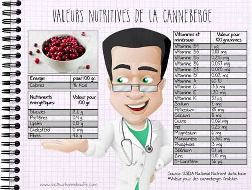 Découvrez la composition nutritionnelle de la canneberge ci-dessous :