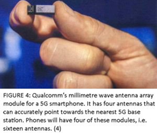 Un réseau d’un peu plus d’un millier d’antennes de ce type ne mesure que quatre pouces carrés, et peut donc facilement tenir dans une petite station de base sur un lampadaire, alors que le smartphone dans votre poche en aura probablement seize (fig.4).