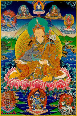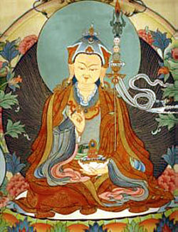 « De la lumière du merveilleux lotus de l’Immaculée Conscience Divine, du Plan Pur des Essences spirituelles, tu te lèves, ô Toi, celui qui a atteint le bonheur parfait, sans tâche, Toi, Padma, seul maître des huit noms spirituels! »