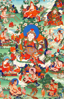 Essayant de trouver une doctrine spirituelle facile à expliquer et d’une efficacité immédiate, il voyagea par des voies paranormales dans un monde paradisiaque très élevé, où lui fut révélé le fait que tous les sons sont de véritables MANTRAS et que toutes les manifestations du plan physique sont éphémères, illusoires. En assimilant les TANTRAS de la voie Mahayoga, Padma contempla les vérités qui deviennent une, il médita sur les trois Samadhis et, à travers un rituel spécifique, il parvint à les expérimenter pleinement dans son propre être. Alors il fut nommé Orgyen Dorje Chang, le propriétaire du Sceptre VAJRA d’Orgyen.