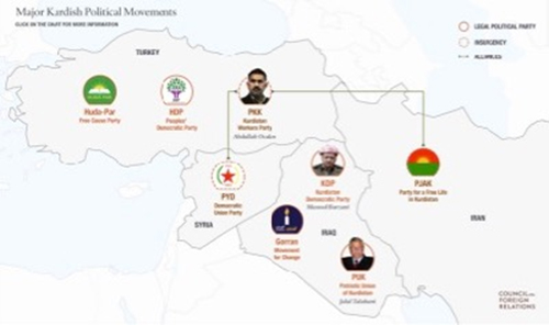 Les Kurdes, répartis aux quatre coins du Moyen-Orient, n’ont jamais renoncé à leurs aspirations à l’image de nombreux groupes. Bien qu’une partie des Kurdes ait fondé des organisations et des partis politiques légitimes dans le but de favoriser et de promouvoir leurs droits et leur liberté, d’autres, comme le PKK turc ont utilisés des stratégies de guérillas et d’attaques terroristes qui ont eu pour cibles des civils, parfois même des compatriotes.