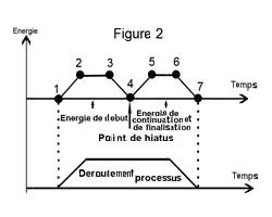 Pour cette raison, dans le cadre de toute action ou processus, exactement dans le MOMENT OCCULTE DU HIATUS, autrement dit, exactement au moment de neutralité qui apparaît après le déroulement initial dans le cadre des trois phases distinctes (de croissance de l’énergie, de maintien de l’énergie dans l’action, qui est la phase caractérisée par un plateau sui generis, et par la décroissance qui apparaît lorsque l’énergie diminue), du fait que l’énergie diminue et prend fin, il est toujours nécessaire de réaliser un apport (même si nous ne le conscientisons pas, pourtant il se produit de façon mystérieuse et inéluctable) d’une nouvelle énergie qui est structurée du point de vue informationnel de même que l’ÉNERGIE MYSTÉRIEUSE DU DÉBUT, de manière que l’action ou le processus en question soit pris pratiquement en passant, étant ensuite continué et finalisé comme il faut, en conformité avec le but fixé initialement. Cette deuxième énergie, qui pourrait être nommée “énergie de continuation et de finalisation”, est intégrée au moment opportun dans le MOMENT OCCULTE DE HIATUS afin de permettre la continuation de l’action ou du processus en question et elle se manifeste toujours en trois phases évolutives [de croissance de l’énergie, de maintien de l’énergie dans l’action (phase qui est caractérisée par un plateau sui generis) et par la décroissance qui apparaît lorsque l’énergie baisse], qui, ajoutées aux quatre première phases initiales du processus (respectivement les trois phases de l’énergie du début auxquelles on ajoute le moment de neutralité ou le MOMENT OCCULTE DE HIATUS), marque en totalité les 7 phases distinctes du déroulement de l’action ou du processus, selon le diagramme suivant: