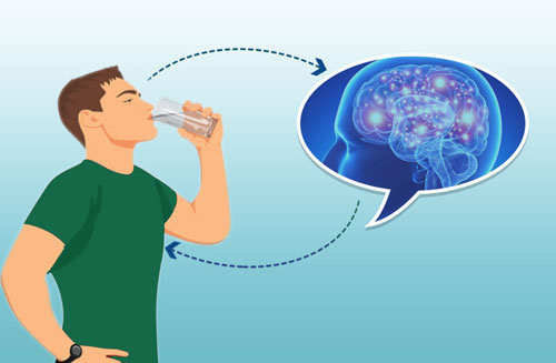 Les organes circumventriculaires, situés dans le cerveau, autour de l’hypothalamus, contiennent des neurones capables de repérer les écarts de volume sanguin total du corps (la volémie) et les variations de concentration des différents éléments présents dans le sang. C’est l’activation de ces neurones qui engendre la soif et pousse les animaux à se désaltérer. Or la soif est satisfaite avant que l’homéostasie ne soit restaurée. De la même manière, une grande partie de la consommation d’eau se produit pendant les repas, en réponse à la soif prandiale qui se développe bien avant que les aliments ingérés ne soient absorbés dans le sang.