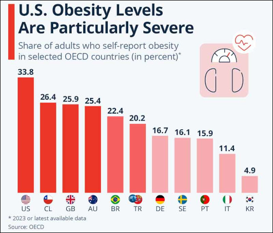 Les niveaux d’obésité aux États-Unis sont particulièrement élevés
