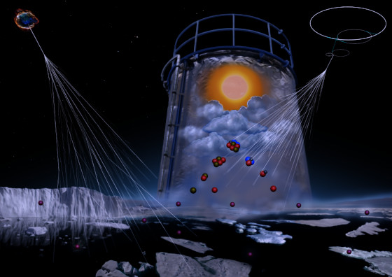 [1] Les rayons cosmiques sont des particules chargées venant des autres étoiles et des supernovas. La plupart sont déviés par le champ magnétique de la terre mais certains arrivent dans l’atmosphère et y provoquent des réactions.