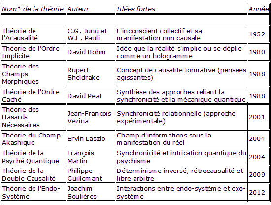 Depuis des décennies, de nombreux auteurs ont cherché à trouver d’autres explications et ont proposé différentes théories alternatives au hasard. Elles s’intéressent toutes à la compréhension de l’ordre sous-jacent au réel qui semble présider à ces manifestations :
