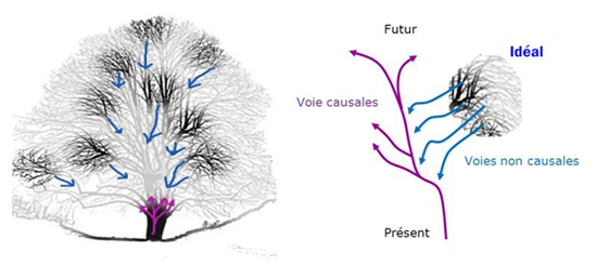 Un aspect particulièrement séduisant de la théorie de François Martin est qu’elle considère l’actualisation d’une réalité comme un processus où la conscience joue un rôle déterminant de par son attente, en particulier lorsque cette attente est programmée à un niveau inconscient. La figure ci-dessous illustre de façon exagérément simplifiée mais tout à fait parlante ce processus :
