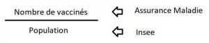 Il faut donc calculer un taux de personnes vaccinées dans la population. Cela suppose de connaître le nombre de personnes vaccinées et la taille de la population. Ce n’est en fait pas si simple et comporte de nombreux biais.