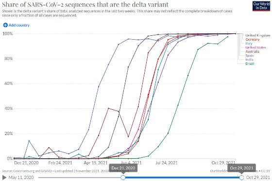 Concernant ce variant Delta, du 1 février au 21 juin 2021 en Grande Bretagne :