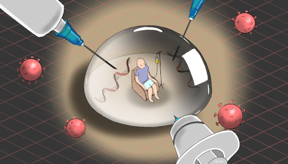 Cette hypothèse a été relancée mi-avril par les scientifiques d’un laboratoire de recherche biomoléculaire (Neo7Bioscience) et des chercheurs de l’Université du Nord-Texas[8]. Les données moléculaires qu’ils ont recueillies suggèrent que l’ARN dérivé du vaccin pourrait être rétrotranscrit dans le génome de l’hôte, modifiant de manière permanente la régulation des gènes. Elles révèlent également des signes cancérigènes et un effondrement immunitaire.