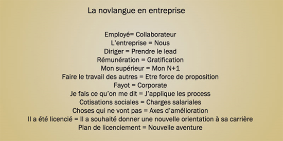 Ce qui inquiète peut-être le plus, ça n’est pas tant le fonctionnement même des entreprises, mais leur efficacité. Cette ploutocratie managériale dicte des règles que personne ne remet en question, que tout le monde applique tel un seul homme, avec tout ce que cela implique : surveillance, autoritarisme, harcèlement, dévouement extrême pour l’entreprise, dogmatisme, dévalorisation, intimidation, autocensure, formatage, auto-exploitation jusqu’à l’épuisement… Autant dire que si demain une dictature venait à émerger, les gens y seraient prêt, l’entreprise a amplement commencé le travail d’éducation.