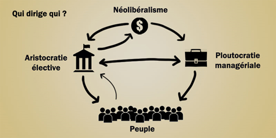 Pour finir, on insisterait sur le terme de ploutocratie managériale, puisque les grandes entreprises sont dirigées par les personnes les plus riches de la société et que leur méthode de contrôle est principalement le management. D’ailleurs, en parlant de ça, la frontière entre l’aristocratie élective et la ploutocratie managériale n’existe plus, car aujourd’hui la mode est au « new management public ». Il s’agit d’un concept né dans les années 70 qui vise à dissoudre toutes distinctions entre le public et le privé à des fins de performances, d’efficacité, de flexibilité dans un monde changeant, mondialisé, etc., vous connaissez l’argumentaire. Dans cette nouvelle perspective, les citoyens ne doivent plus être considérés comme des citoyens, mais comme des clients, les services de l’état sont petit à petit remplacés par des prestations d’entreprises privées. En fait, l’État ne fait plus que « piloter » les actions publiques qui sont elles-mêmes exécutées par les entreprises. On peut dire, à la vue de ces quelques lignes que la « nouvelle gestion publique » est en réalité du néolibéralisme appliqué. Pourquoi n’ont-ils pas appelé cela « la nouvelle gestion publique néolibérale », au moins ça serait clair pour tout le monde. Pourquoi cacher l’idéologie qui sous-tend cette idée merveilleuse ? Parce que oui, le néolibéralisme est une idéologie, ça n’est pas la plus « réaliste », la plus « rationnelle », comme le prétendent certains économistes et politiciens néolibéraux… C’est seulement la meilleure idéologie pour créer un pognon monstre en très peu de temps.