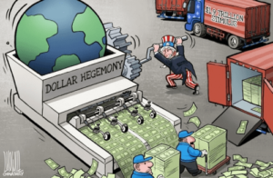 Les États-Unis exploitent les richesses du monde à l’aide du « seigneuriage ». La production d’un billet de 100 dollars ne coûte qu’environ 17 cents, mais les autres pays ont dû débourser 100 dollars de biens réels pour en obtenir un. Il y a plus d’un demi-siècle, il a été souligné que les États-Unis jouissaient d’un privilège exorbitant et d’un déficit sans larmes créé par leur dollar et qu’ils utilisaient ce billet sans valeur pour piller les ressources et les usines des autres nations.