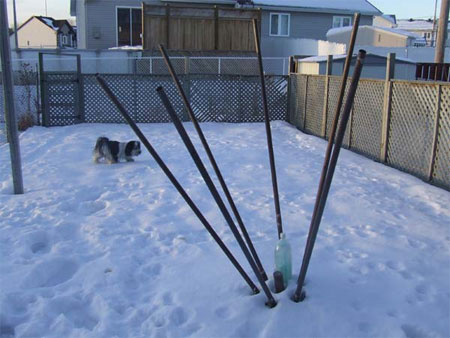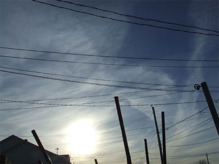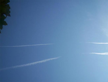 On voit que le ciel est rempli de Chemtrails. Les tuyaux sont ceux du Chem-buster.
