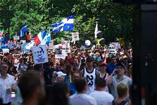 « Ça ‘bypass’ les mesures environnementales, les contrats sans appel d’offres, la commission Charbonneau a coûté 44 millions, on ne veut pas de corruption, [la loi 61] favoriserait ça. Ça donnerait des pouvoirs illimités, pendant une durée indéterminée », a lancé l’initiatrice d’une pétition contre ladite loi.