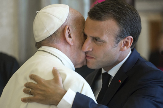 Son comportement avec les chefs des grandes puissances montre aussi cette volonté d’éblouir et en même temps de séduire ces hommes qu’il sait lui être supérieurs. Il les reçoit à Versailles et se montre très affectueux, sourires, caresses et même, quand il ira au Vatican, un baiser totalement non sincère – voyez ses yeux – au Pape dont il venait de caresser la joue.