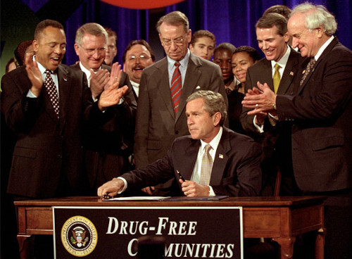D’autre part, parce que les résultats de cette « lutte contre la drogue » relèvent davantage du combat de classe que d’une action constructive. « Aux États-Unis, les lois antidrogue votées depuis les années 1970 ont eu pour conséquence de faire gonfler la population carcérale d’origine afro-américaine, comptant aujourd’hui pour 40 % de la population carcérale américaine et 59 % de la population emprisonnée pour violation de la législation en matière de stupéfiants », explique André Marchand dans un article paru en 2016 dans la revue « L’homme et la société »[14].