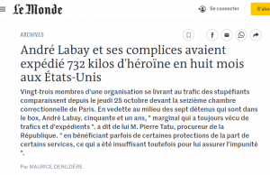 En 1971, un certain André Labay (né en 1922), hommes d’affaires dans l’import-export, a été arrêté à Paris dans un véhicule avec plus de 100 kilos d’héroïne destinés aux Etats-Unis, où il a ensuite été accusé d’avoir importé depuis la France plus de 732 kilos d’héroïne dans des voitures « farcies ». Quelques semaines plus tôt, un des truands de sa bande avait été arrêté à New York à bord d’un autre véhicule chargé d’héroïne.