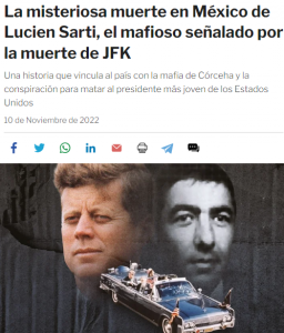 En 2003, l’ex agent de la CIA Howard Hunt a dit à son fils peu avant de mourir que Sarti avait été recruté ainsi que d’autres Corses par William Harvey, officier de la CIA qui a coordonné quelques complots contre Castro. Son rôle était de s’assurer que l’objectif avait été atteint par Lee Harvey Oswald et de doubler son tir. Sarti, tué par la police en 1972 au Mexique après avoir été localisé par les US, était sur place probablement en uniforme de policier, et aurait tiré la balle fatale de l’arrière. Les deux autres Corses étaient en hauteur dans des immeubles.