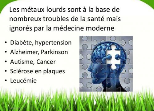 De nombreuses affections physiques et mentales sont provoquées par une intoxication chronique aux métaux lourds. Ils intoxiquent les cellules et prennent la place des oligo-éléments qui sont des catalyseurs d’activités enzymatiques. Cette substitution a pour effet d’inhiber de nombreuses fonctions vitales au niveau cellulaire. De plus, ils perturbent le fonctionnement du système immunitaire et sont responsables des maladies auto-immunes dont la fréquence ne cesse d’augmenter.