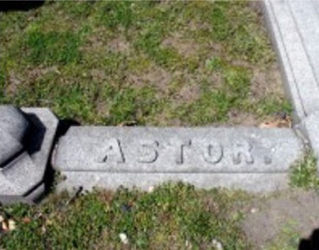C’est tout aussi étrange. C’est une photo de la tombe d’Astor au Trinity. Il y est commémoré comme John J. Astor. Avec un point après Astor, comme vous pouvez le voir mais sans le IV. Pourquoi y-a-t-il besoin d’un point ? Et comme il a été enterré près de ses homonymes, comment peut-on faire la différence entre une tombe et une autre ?