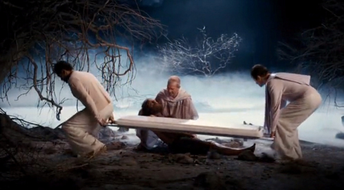 Il y cherche et n’y trouve aucune grâce jusqu’à ce qu’il soit au bout de sa corde et qu’il prie le divin de l’aider. L’aide vient et il est secouru par des gens entourés d’une aura de Lumière.