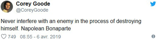 « N’interférez jamais avec un ennemi qui est en train de se détruire tout seul. »