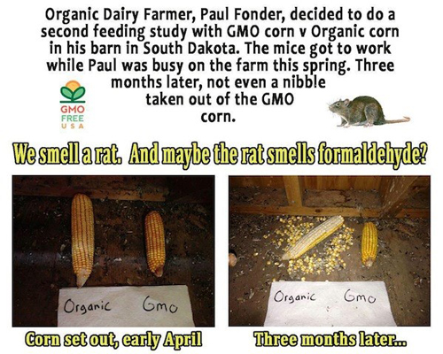Les animaux qui ont été nourris au maïs transgénique ont eu des petits-enfants stériles. Lorsque les OGM furent créés, certaines personnes savaient qu’ils étaient mauvais pour la santé, mais personne ne savait à quel point ils l’étaient. Nous le savons maintenant. En fait, non seulement ils tuent les gens parce qu’ils sont hautement toxiques, mais ils ont aussi quelque chose de fondamentalement différent de la nourriture naturelle normale, ils éliminent la race humaine sur le long terme. Parce que les animaux nourris aux OGM n’ont plus de petits-enfants féconds. Aucune autre nourriture toxique ne fait pas cela ! Ceci est la preuve que nous avons à faire avec quelque chose de radicalement différent.