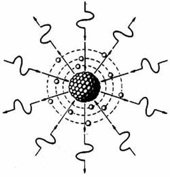 Mais les ondes scalaires sont absorbées par la matière, qui en réémet à son tour ; et ainsi les ondes scalaires sont échangées à chaque instant par toute particule de matière. La matière absorbe et réémet des ondes scalaires, qui sont donc une énergie qui circule comme une forme de respiration.