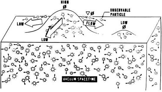 Elles sont produites par le vide (la physique quantique prévoit que le vide est rempli de particules virtuelles, c’est à dire indétectables car existant durant des fractions de seconde extrêmement courtes, qui apparaissent et disparaissent), et ces particules émettent des ondes électromagnétiques en interagissant les unes avec les autres, cela des millions de fois par seconde dans chaque micromètre cube d’espace vide. Donc des ondes électromagnétiques de toutes fréquences sont émises, dans toutes les directions, et ces ondes s’annulent les unes les autres, produisant un résultat total nul selon la physique quantique. Selon la physique des ondes scalaires, cela produit des ondes scalaires de toute direction et magnitude : le vide est rempli de pression d’ondes scalaires qui le remplissent d’énergie.