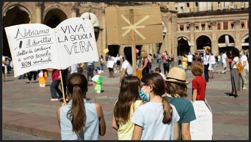 « Nous avons le droit : droit d’aller dans une école NON virtuelle-Vive la vraie école »: manifestation de 400 enfants et parents à Bologne le 23 mai