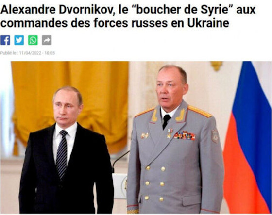 « Des faubourgs de Grozny en Tchétchénie au cœur d’Alep en Syrie, il traîne une réputation sulfureuse de militaire prêt à tout pour atteindre ses objectifs. Certains, à l’instar du général américain et ancien chef de la CIA David Petraeus, l’ont même surnommé le « boucher de Syrie » pour son rôle de premier plan durant la campagne militaire russe en Syrie. Dorénavant, le général Alexander Dvornikov va s’occuper de la guerre en Ukraine.