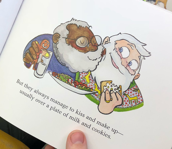 Un an plus tard, le couple publie avec l’aide de l’illustratrice AP Quach un ouvrage intitulé Santa’s husband ( Le Mari du Père Noël) qui montre le quotidien du Père Noël et de son mari entre préparation intensive des cadeaux, petits pas de danse, disputes et réconciliations au-dessus d’une grosse assiette de cookies.