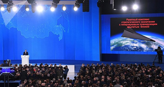 Le 1 mars, le dirigeant russe a livré son message annuel au parlement, rompant ainsi avec la tradition des années précédentes, où il se livrait à cet exercice au mois de décembre. Au cours de son allocution, plusieurs sujets internationaux et intérieurs ont été soulevés, notamment plusieurs points étaient consacrés aux nouveaux armements russes en cours d’élaboration ou de tests.