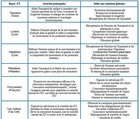En conclusion, les principales activités des Arcturiens et des autres races extraterrestres situées en dehors du complexe militaro-industriel-extraterrestre peuvent être résumées comme suit dans le tableau 2.