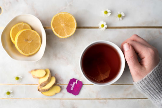 Pour réduire la congestion, la toux grasse et l’inflammation, il est recommandé d’utiliser des herbes anti-inflammatoires stimulantes telles que le gingembre et le curcuma. A retrouver dans les infusions Trois gingembres, Or de curcuma ou Citron, gingembre et miel de Manuka.
