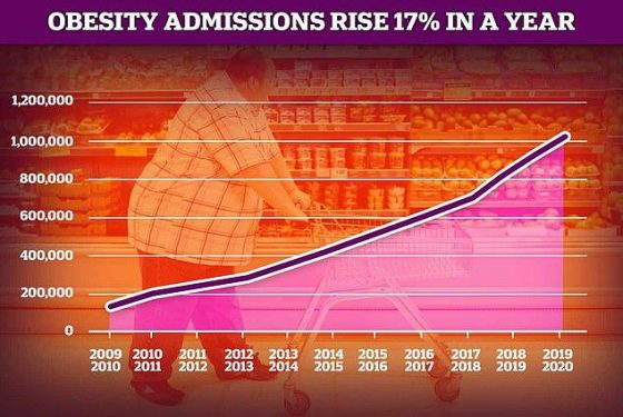 « Un million de personnes, un chiffre record, ont été admises à l’hôpital pour cause d’obésité en Angleterre l’année dernière, selon des données officielles.