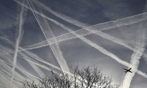 Après des années d’observations je peux dire aujourd’hui que 90% des trainées que nous voyons ne sont pas des trainées de condensation mais des chemtrails. Ce qui se passe dans le ciel (pour la météo) se produit en dessous de 9.000 mètres alors que le trafic commercial a lieu au-dessus de 11.000 mètres. Les chemtrails sont les plus marquants de 5.500 mètres à 9.500 mètres. Les avions de ligne sont bien au-dessus.