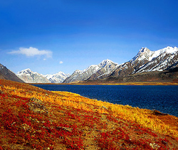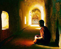 Pour des raisons politiques, l’accès des étrangers, plus spécialement des européens, au Tibet a été complètement interdite au long des siècles, ou au moins extrêmement difficile. Les voyageurs qui ont quand même réussi à entrer au Tibet, racontent avec admiration et étonnement la fascination exercée par ce pays d’une beauté hors du commun, souvent sauvage et mystérieux. Ils racontent que le paysage, par son immensité, par le contraste frappant entre le ciel, les montagnes couvertes de neige, les étendues désertes, les abîmes ahurissants et les grandes vallées, produit une impression si puissante sur l’âme et sur le mental, les orientant spontanément vers la contemplation et l’introspection. En plus, tout le Tibet est « parsemé par des CHORTENS (des constructions religieuses) et des monastères ; partout il est possible de rencontrer des drapeaux sur lesquels sont inscrits des formules ou des symboles religieux. Sur les rochers ou les versants des montagnes sont peints des symboles religieux ou des MANTRAS, par exemple le célèbre MANTRA bouddhiste „AUM MANI PADME HUM”.