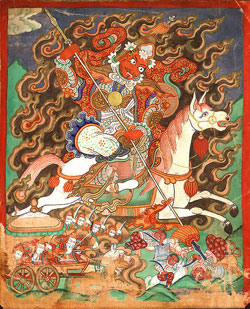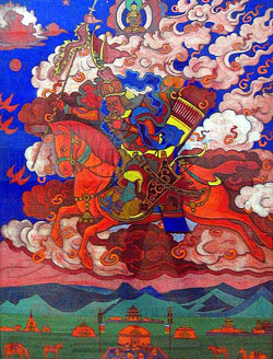 Une image traditionnelle tibétaine de facture prophétique figure la bataille finale entre les forces du bien et du mal: à cheval, à la tête de son armée, le roi de Shambhala brise les forces négatives qui ont pris possession de notre planète. La bataille décisive entre le bien et le mal aura lieu, disent-ils, en prépondérance dans les plans subtils, exactement dans la période que nous vivons maintenant, à la fin du Kali Yuga.