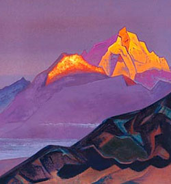 Dans ce tableau, le roi de Shambhala est représenté entouré par les flammes. La réponse des politiciens fut incroyable et rapide : ils décidèrent immédiatement de construire un temple pour cette peinture. Toutefois, étonnés, ils demandèrent à Roerich de quelle manière il avait pris connaissance de la vision que l’un des plus respectés lamas mongoles venait d’avoir, vision dans laquelle le roi de Shambhala était exactement comme dans la peinture de Nicholas Roerich. Voici la vision de ce lama, telle qu’un membre du gouvernement de la Mongolie la raconta au peintre : « Le lama vit une grande foule de personnes de toutes les nations ; tous regardaient vers l’Occident. Puis est apparu un cavalier gigantesque sur un cheval semblable au feu, entouré par des flammes, portant dans la main le drapeau de Shambhala – il était le Roi béni de Shambhala. Il a commandé à la foule de regarder d’Ouest vers l’Est. La description du visage et des vêtements du Roi faite par ce lama est identique à l’image peinte par vous. »