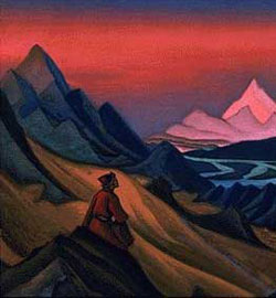 Dans ce contexte, il est intéressant de mentionner un événement remarquable rapporté dans un journal de voyage de Nicholas Roerich, publié sous le titre « Heart of Asia » (Le Cœur de l’Asie) en 1929. Au cours de leur voyage, Roerich et quatre de ses compagnons furent tous témoins d’un événement paranormal, qui peut être expliqué soit par une interférence avec le plan subtil éthérique où existe le monde de Shambhala, soit par la manifestation exceptionnelle d’un grand prêtre de Shambhala dans le plan physique, comme une manifestation de la grâce divine. L’événement eut lieu près du monastère tibétain Ghum. Les cinq personnes voyageaient en voiture sur une route étroite ; à un moment donné, ils passèrent auprès d’une litière portée par quatre hommes habillés en gris. Dans la litière se trouvait un lama aux cheveux longs et noir avec une courte barbe noire, ce qui est assez inhabituel pour un moine tibétain. Encore plus inhabituels étaient les vêtements de ce lama, rouges et jaunes, impeccables – par contraste avec l’aspect habituel des moines tibétains, qui étaient habituellement très sales. En outre, ce lama portait sur sa tête une couronne. Il sourit aux voyageurs européens et fit à plusieurs reprises signe avec la tête. Roerich et ses compagnons furent très impressionnés par cette rencontre. Au cours des jours suivants, ils recherchèrent partout des informations sur ce mystérieux lama. À cette occasion, ils trouvèrent qu’il n’y avait pas de lama correspondant à cette description dans tout le district, que dans le Tibet seulement Dalaï-Lama et Tashi Lama étaient portés sur une litière et, qu’en outre, seulement ces deux portaient la couronne, mais uniquement dans les temples, dans le cadre des cérémonies religieuses spéciales.
