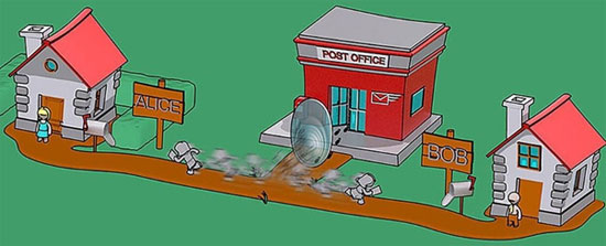 « Envisageons le simple scénario suivant : deux personnes, Alice et Bob, souhaitent s’échanger un simple bit d’information, soit 0 soit 1 » explique Borivoje Dakić (Académie des Sciences autrichienne). « Ils encodent leur message simultanément, directement dans la particule en état de superposition quantique. Une fois l’information encodée, les deux protagonistes envoient chacun leur “part ”de la particule à l’autre ».