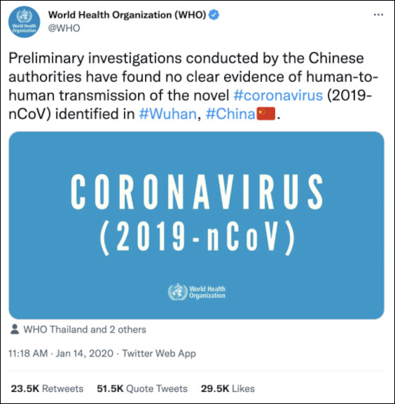De plus, l’idée que l’OMS devrait agir en tant qu’arbitre de la vérité est particulièrement ironique étant donné qu’elle a été l’un des producteurs les plus tristement célèbres d’informations trompeuses pendant la pandémie de covid. Dans un tweet du 14 janvier 2020, l’organisation a déclaré que « les enquêtes préliminaires menées par les autorités chinoises n’ont trouvé aucune preuve claire de transmission interhumaine » du coronavirus.