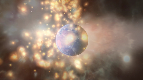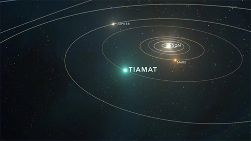 Explosion de la planète Tiamat, dont la majeure partie des débris va former la ceinture d’astéroïdes, tandis que certains morceaux de matière vont impacter les planètes environnantes, notamment Mars et la Terre.