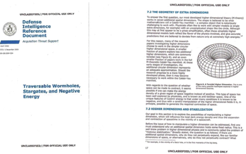 « Ces documents de la Défense soutiennent l’idée que le voyage par trou de vers est possible à travers le tissu cosmique. En utilisant ce même tissu, la race des Anciens Bâtisseurs a fait le réseau protecteur galactique autour de notre groupe d’étoiles. »