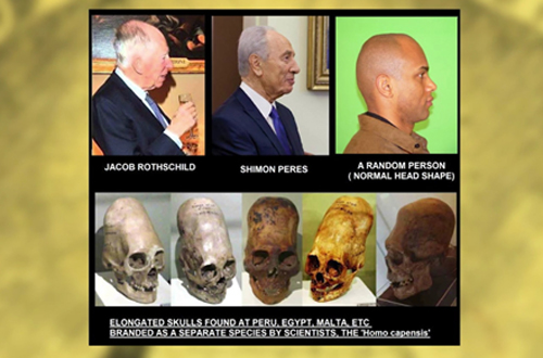 On voit les crânes allongés dans le monde entier et on ne pose pas les questions essentielles. Cela devient un élément très important de la manière dont les Illuminati modernes, ou « État dans l’État » ou Cabale, croient qu’ils sont les descendants de ce peuple au crâne allongé.
