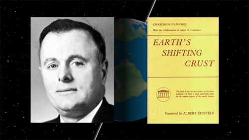 Celui qu’on a le plus associé à la théorie du désalignement est Charles Hapgood, qui a écrit un ouvrage intitulé « The Earth’s Shifting Crust », livre qu’Albert Einstein soutenait, qui en a écrit l’avant-propos, et qui pensait que Hapgood avait raison quant à sa théorie du désalignement des pôles d’environ 40 degrés en l’espace d’un âge.